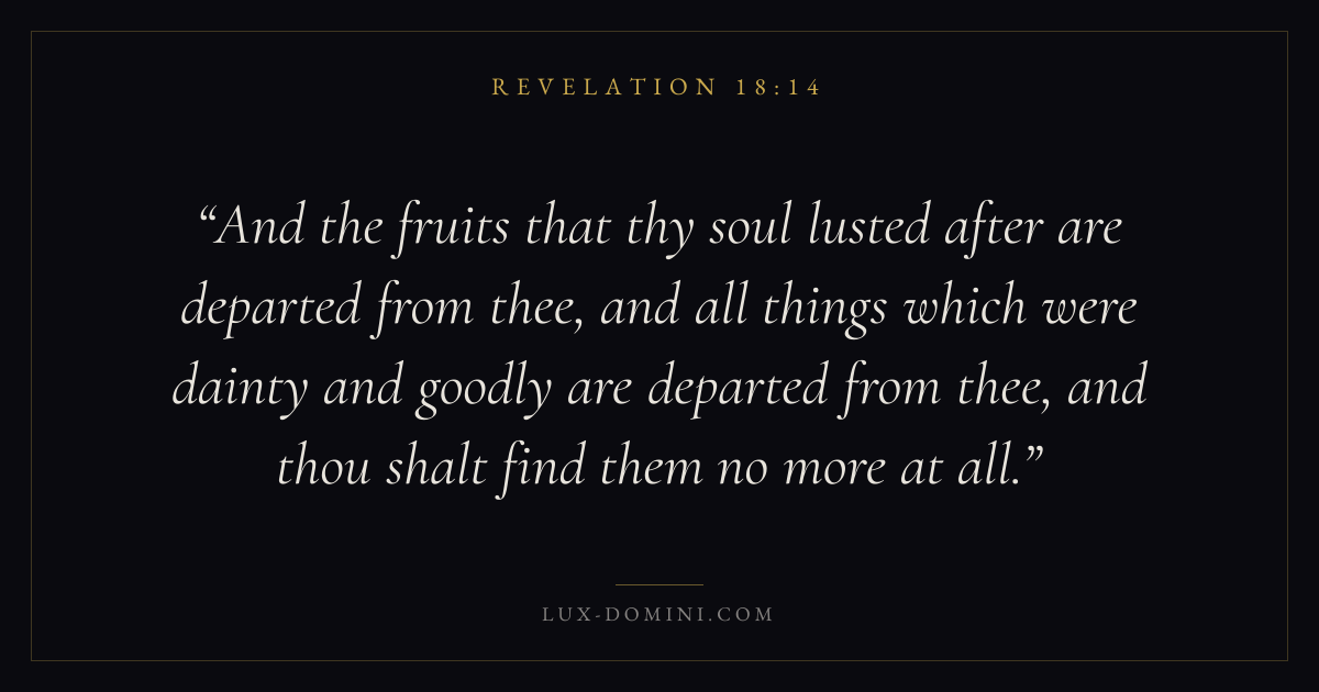 And the fruits that thy soul lusted after are departed from thee, and all things which were dainty and goodly are departed from thee, and thou shalt find them no more at all.