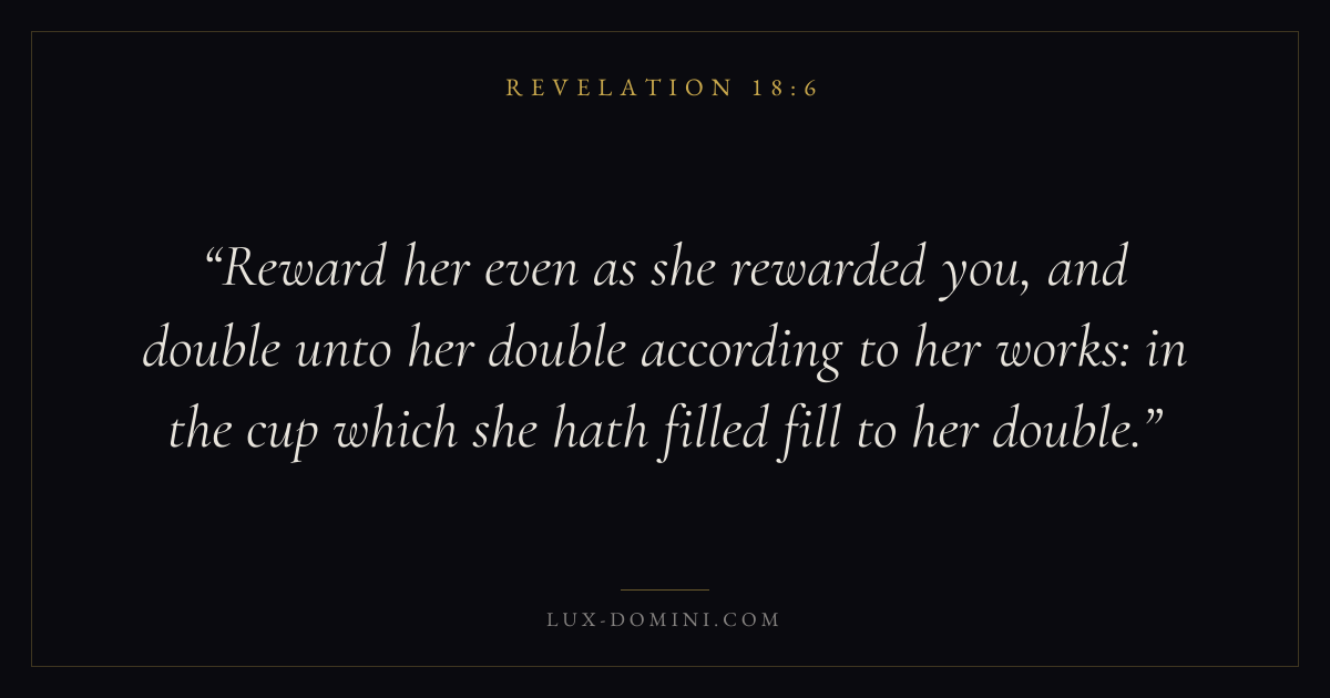 Reward her even as she rewarded you, and double unto her double according to her works: in the cup which she hath filled fill to her double.