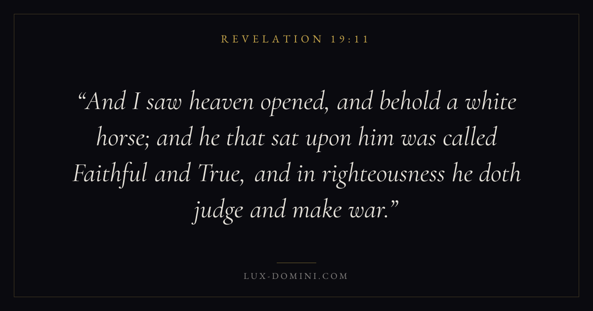 And I saw heaven opened, and behold a white horse; and he that sat upon him was called Faithful and True, and in righteousness he doth judge and make war.