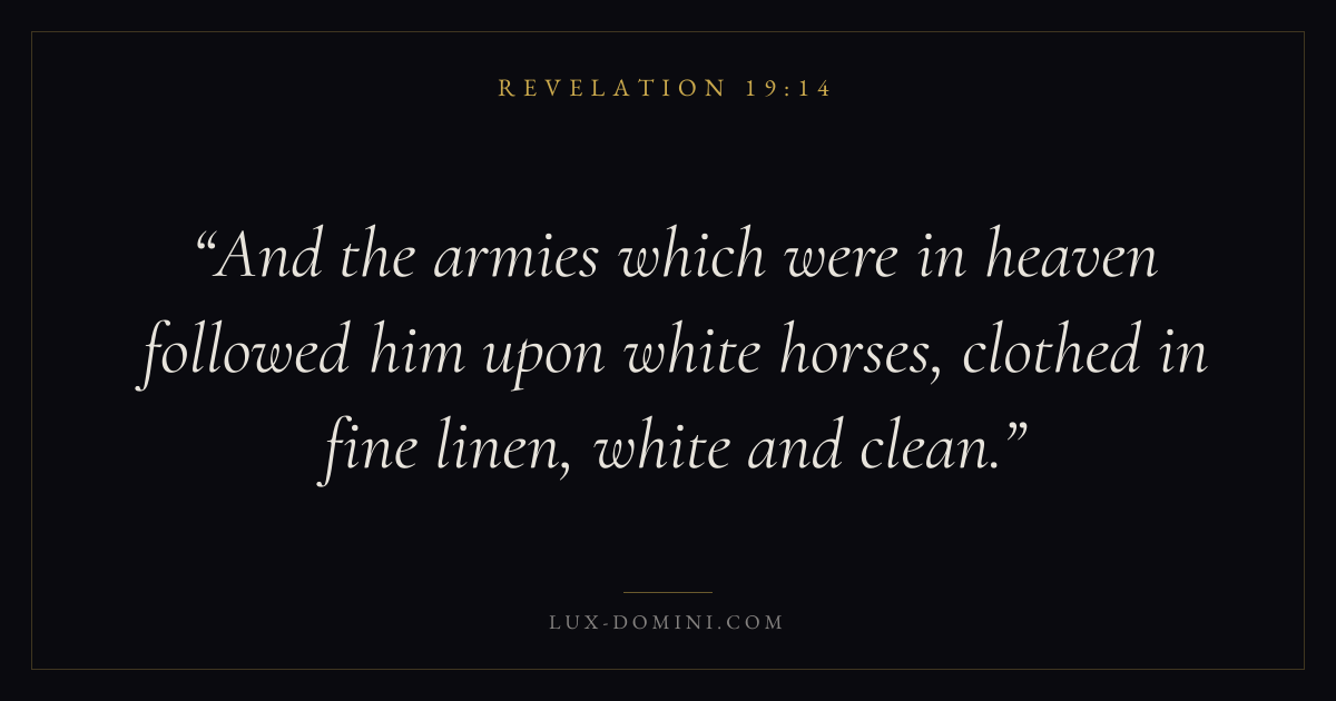 And the armies which were in heaven followed him upon white horses, clothed in fine linen, white and clean.