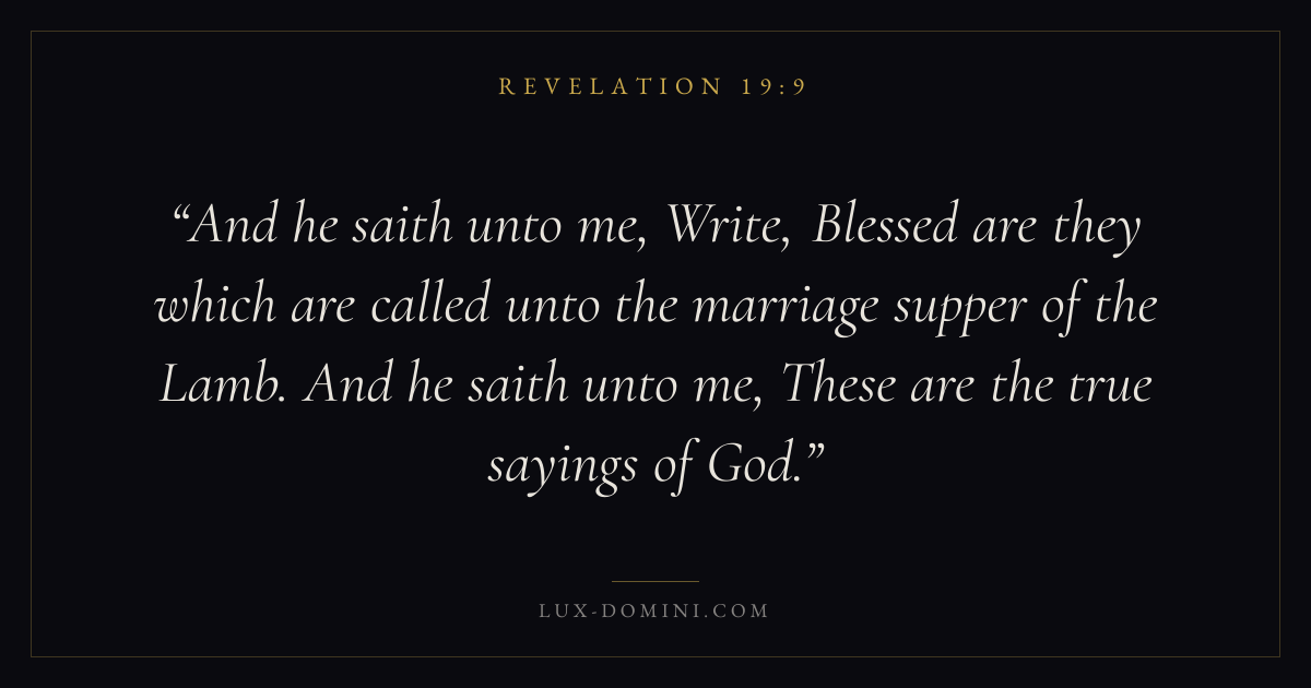 And he saith unto me, Write, Blessed are they which are called unto the marriage supper of the Lamb. And he saith unto me, These are the true sayings of God.