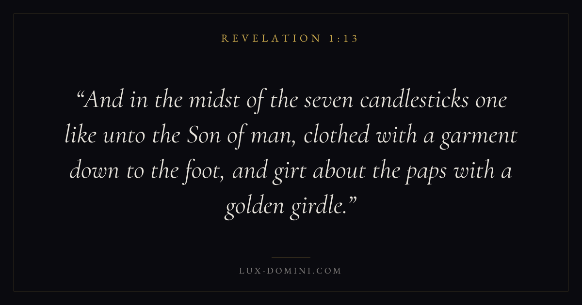 And in the midst of the seven candlesticks one like unto the Son of man, clothed with a garment down to the foot, and girt about the paps with a golden girdle.