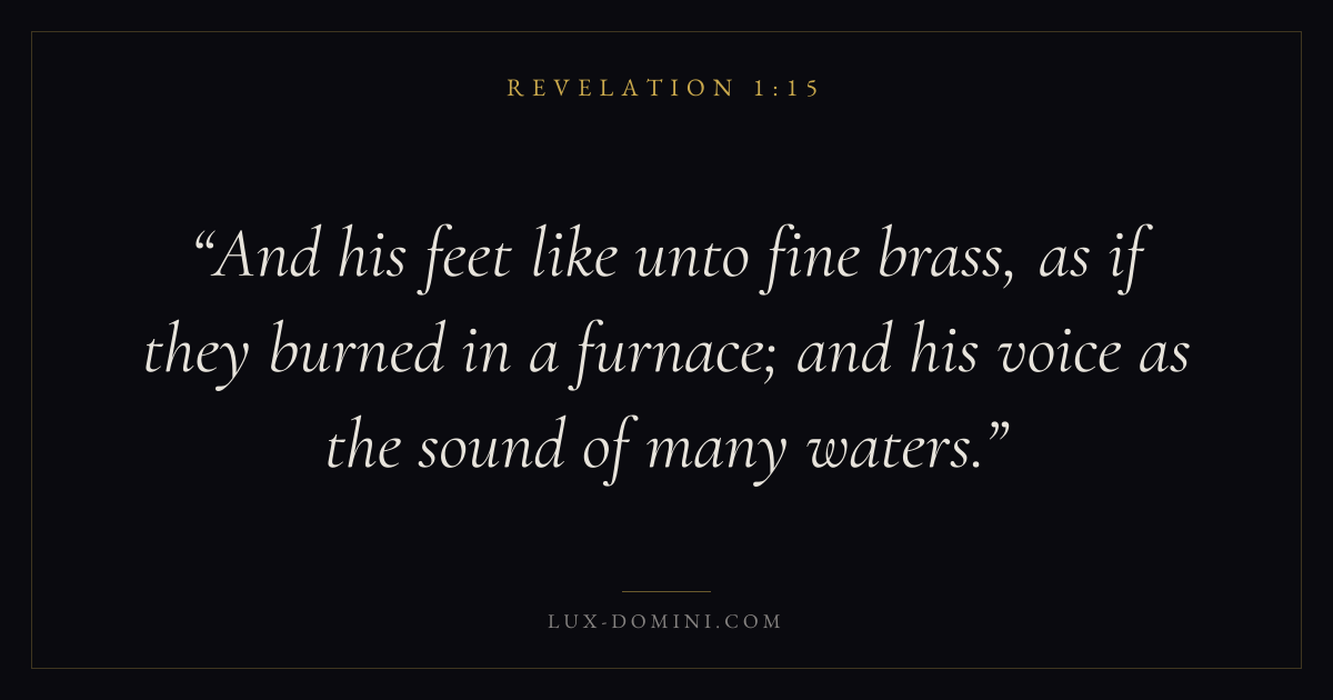 And his feet like unto fine brass, as if they burned in a furnace; and his voice as the sound of many waters.