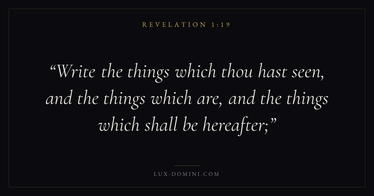 Write the things which thou hast seen, and the things which are, and the things which shall be hereafter;