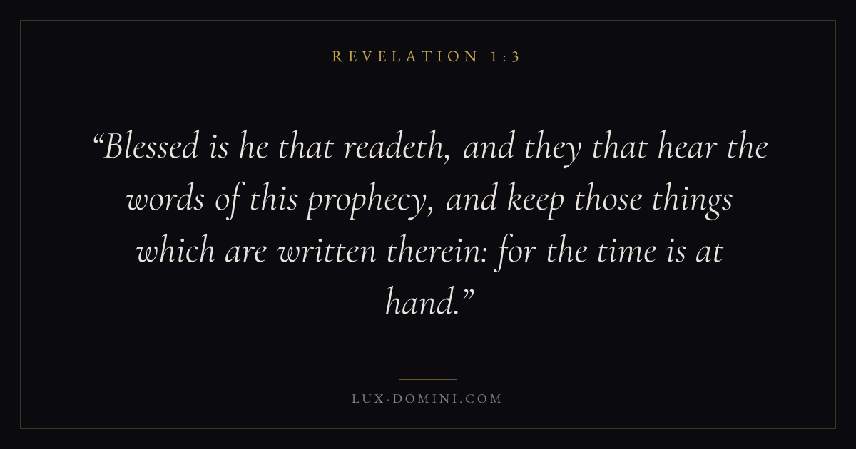 Blessed is he that readeth, and they that hear the words of this prophecy, and keep those things which are written therein: for the time is at hand.