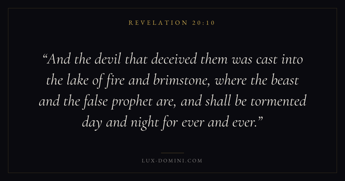And the devil that deceived them was cast into the lake of fire and brimstone, where the beast and the false prophet are, and shall be tormented day and night for ever and ever.