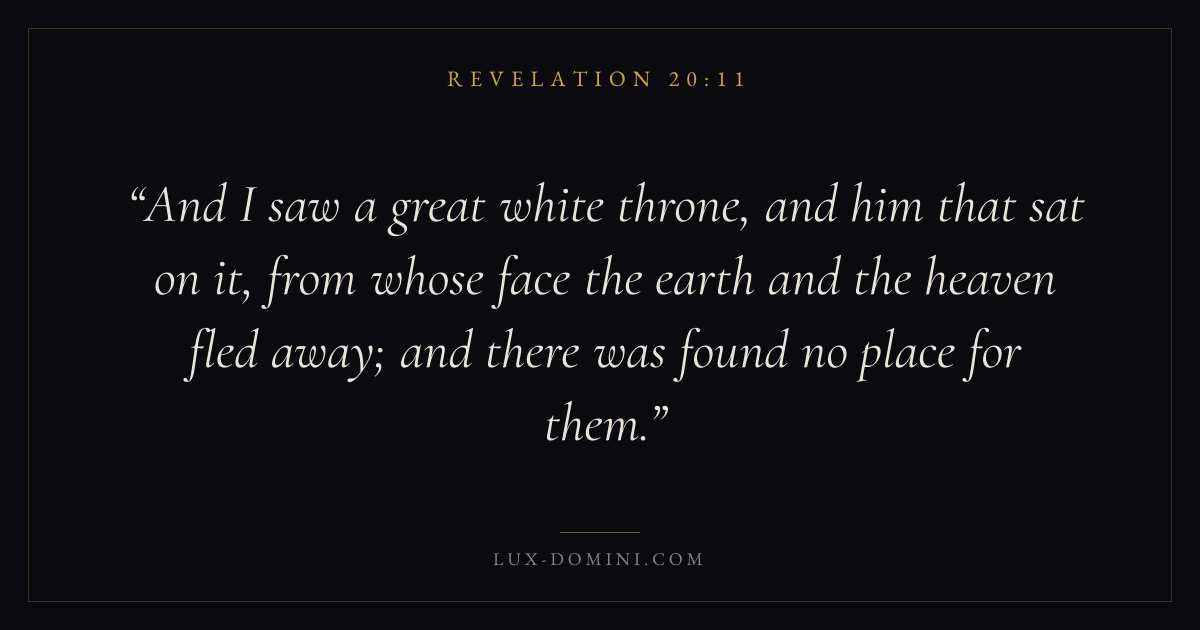 And I saw a great white throne, and him that sat on it, from whose face the earth and the heaven fled away; and there was found no place for them.
