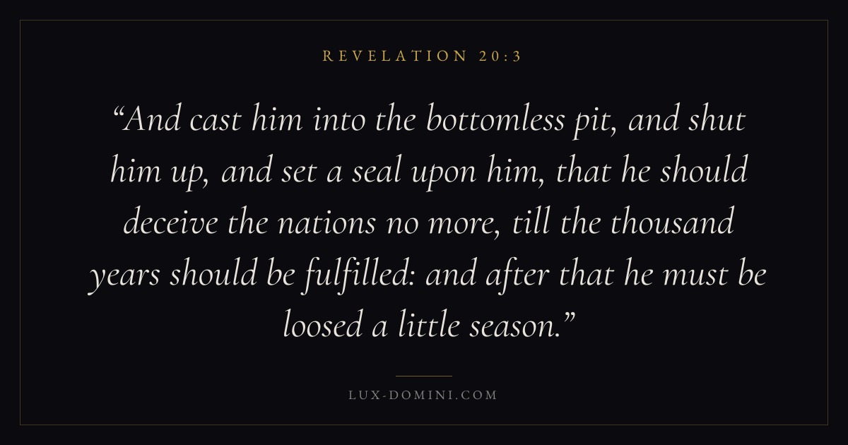And cast him into the bottomless pit, and shut him up, and set a seal upon him, that he should deceive the nations no more, till the thousand years should be fulfilled: and after that he must be loosed a little season.