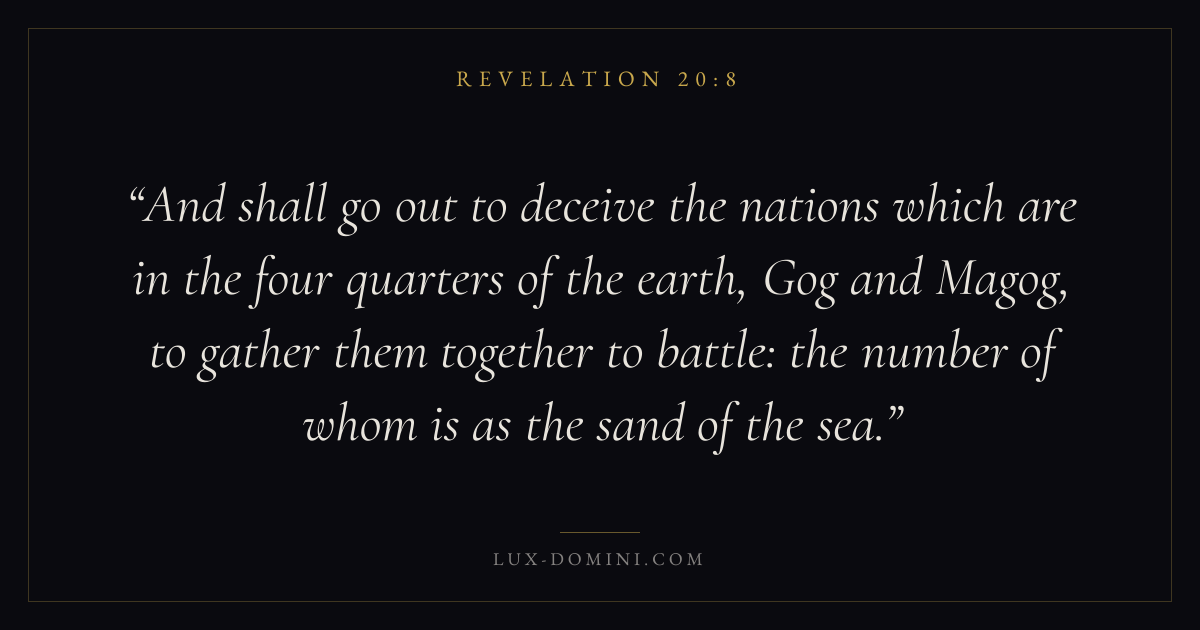 And shall go out to deceive the nations which are in the four quarters of the earth, Gog and Magog, to gather them together to battle: the number of whom is as the sand of the sea.