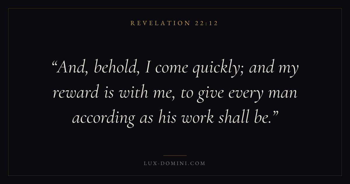And, behold, I come quickly; and my reward is with me, to give every man according as his work shall be.