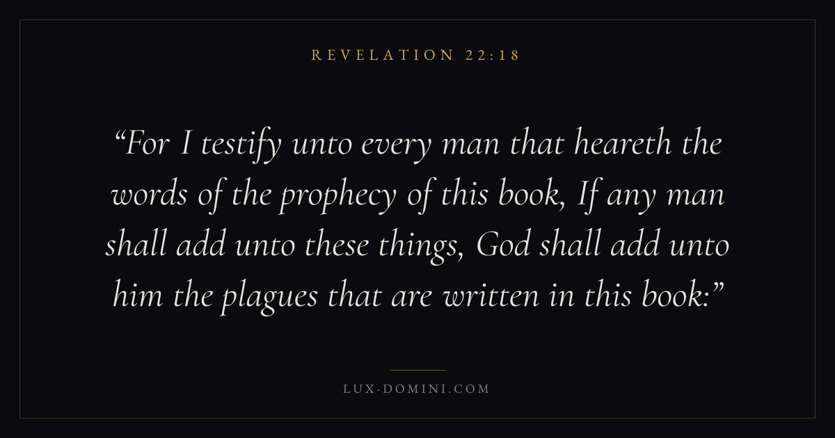For I testify unto every man that heareth the words of the prophecy of this book, If any man shall add unto these things, God shall add unto him the plagues that are written in this book: