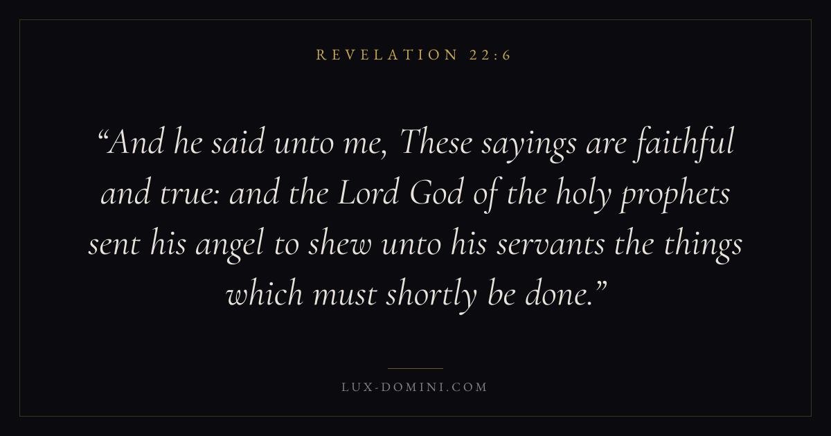 And he said unto me, These sayings are faithful and true: and the Lord God of the holy prophets sent his angel to shew unto his servants the things which must shortly be done.
