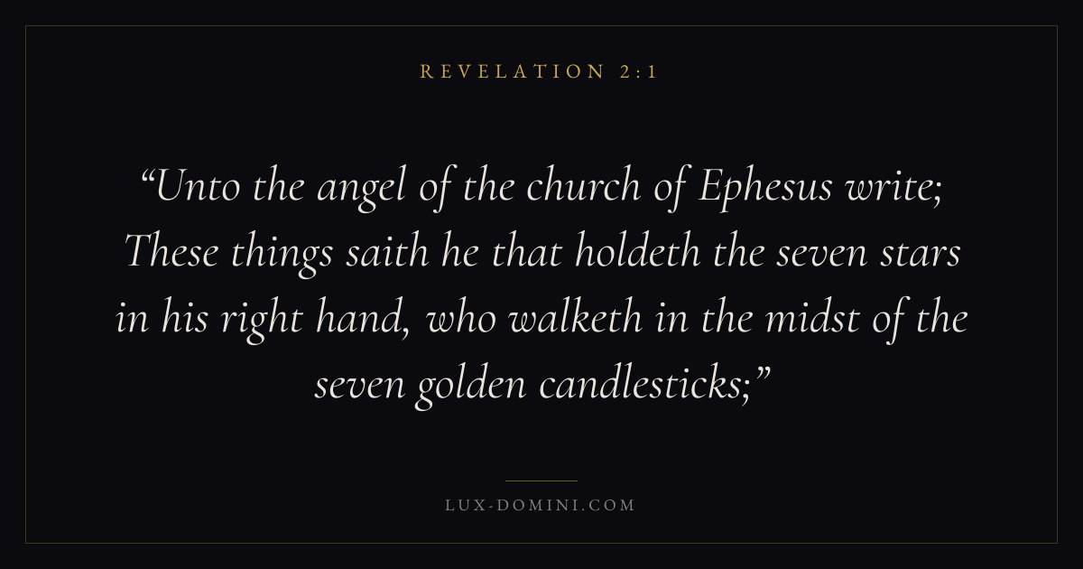 Unto the angel of the church of Ephesus write; These things saith he that holdeth the seven stars in his right hand, who walketh in the midst of the seven golden candlesticks;