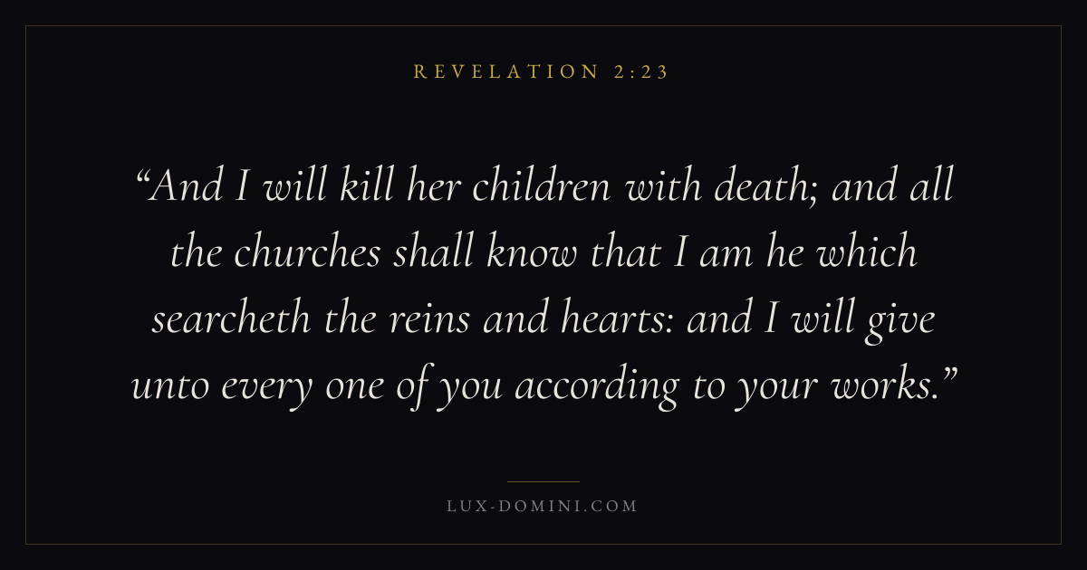 And I will kill her children with death; and all the churches shall know that I am he which searcheth the reins and hearts: and I will give unto every one of you according to your works.