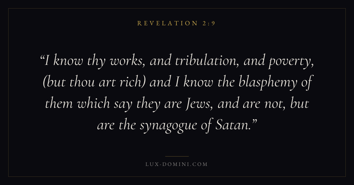 I know thy works, and tribulation, and poverty, (but thou art rich) and I know the blasphemy of them which say they are Jews, and are not, but are the synagogue of Satan.