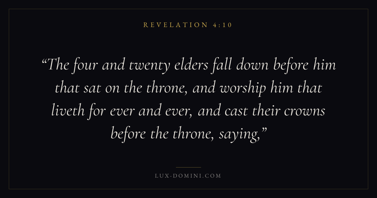 The four and twenty elders fall down before him that sat on the throne, and worship him that liveth for ever and ever, and cast their crowns before the throne, saying,