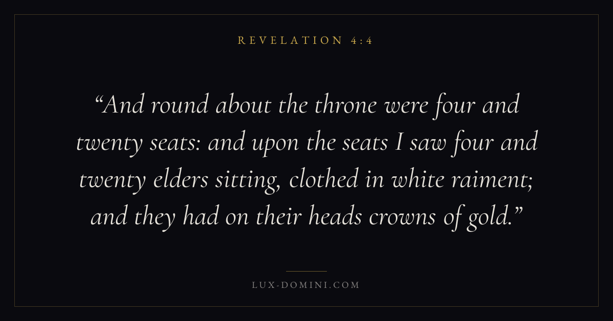And round about the throne were four and twenty seats: and upon the seats I saw four and twenty elders sitting, clothed in white raiment; and they had on their heads crowns of gold.