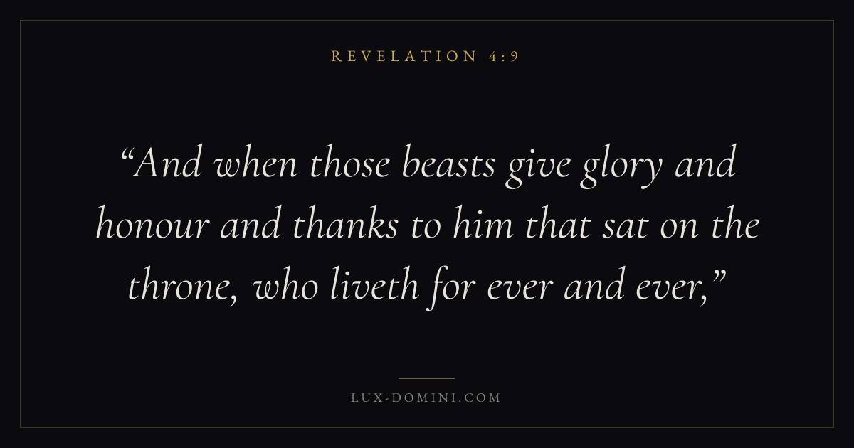 And when those beasts give glory and honour and thanks to him that sat on the throne, who liveth for ever and ever,