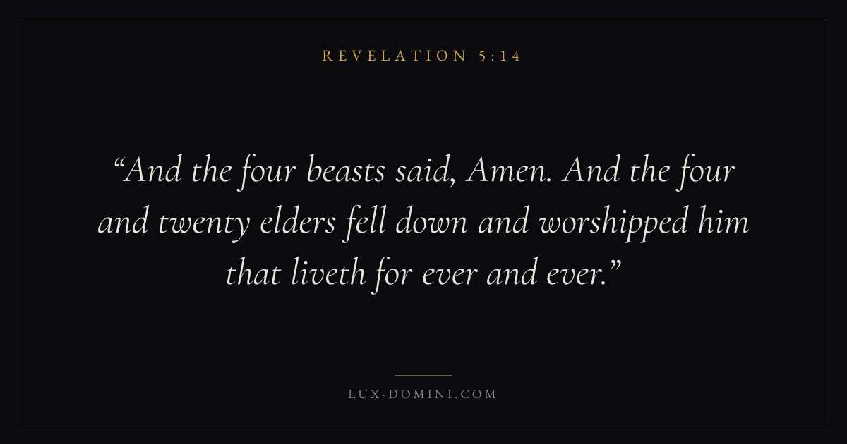 And the four beasts said, Amen. And the four and twenty elders fell down and worshipped him that liveth for ever and ever.