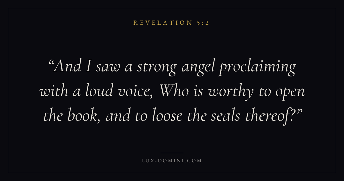 And I saw a strong angel proclaiming with a loud voice, Who is worthy to open the book, and to loose the seals thereof?