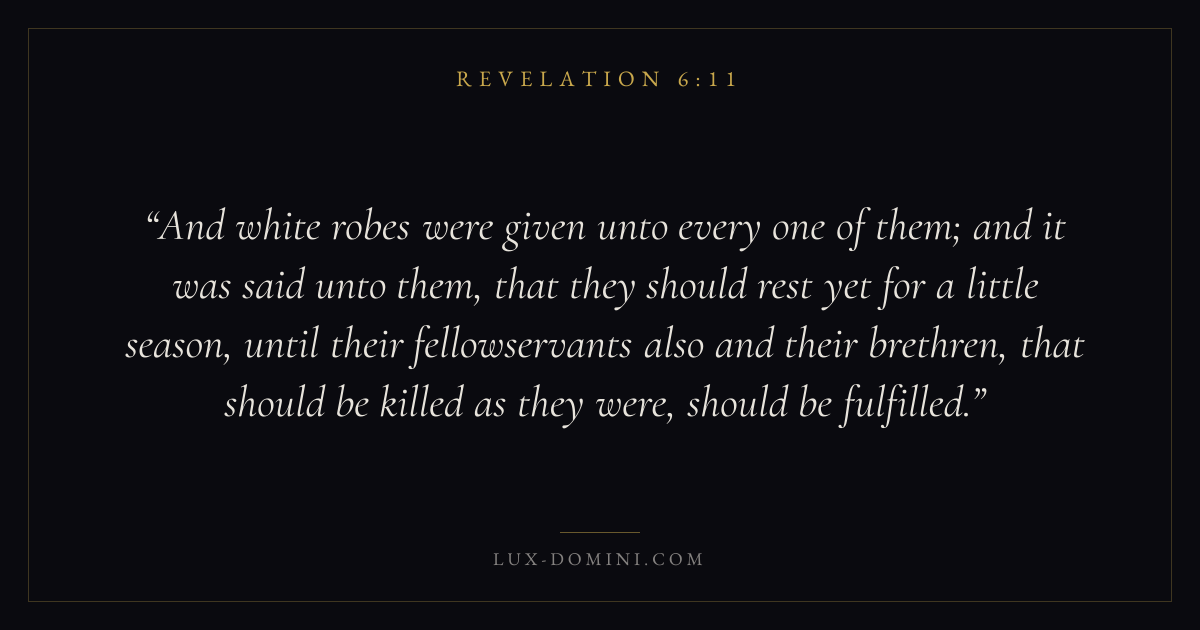 And white robes were given unto every one of them; and it was said unto them, that they should rest yet for a little season, until their fellowservants also and their brethren, that should be killed as they were, should be fulfilled.