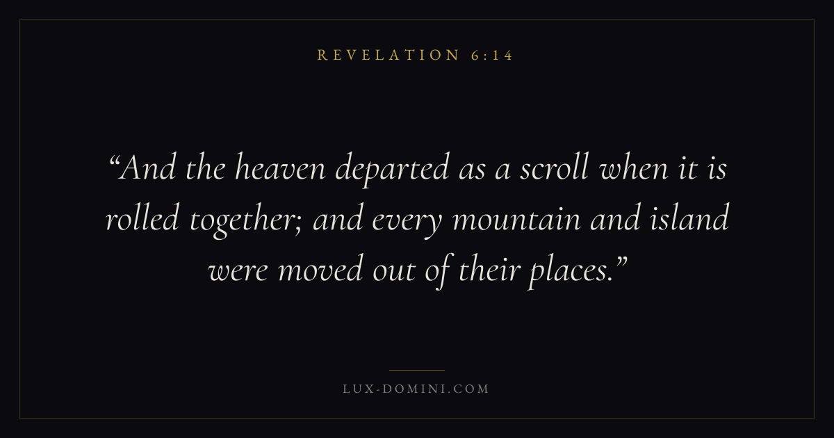 And the heaven departed as a scroll when it is rolled together; and every mountain and island were moved out of their places.
