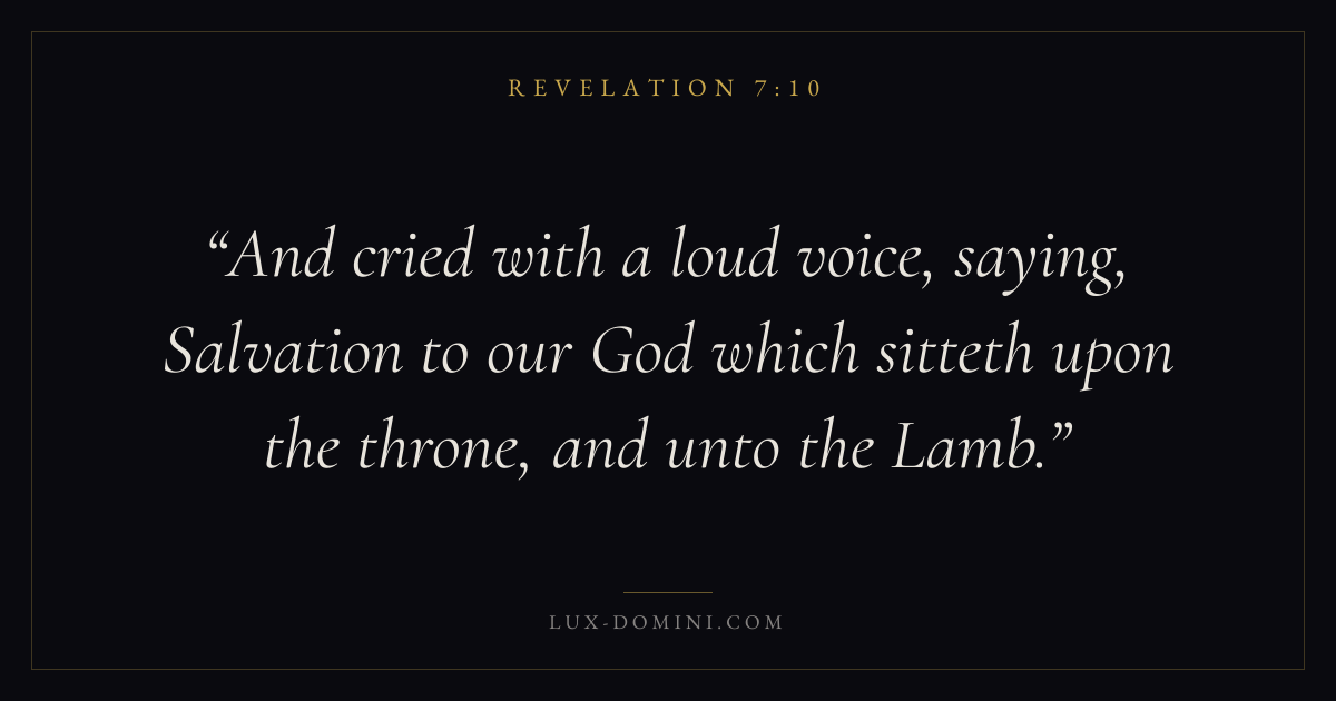 And cried with a loud voice, saying, Salvation to our God which sitteth upon the throne, and unto the Lamb.