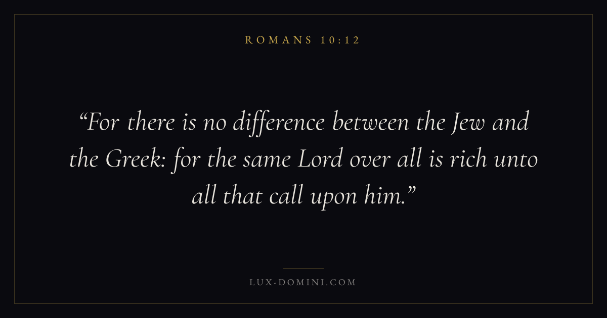For there is no difference between the Jew and the Greek: for the same Lord over all is rich unto all that call upon him.