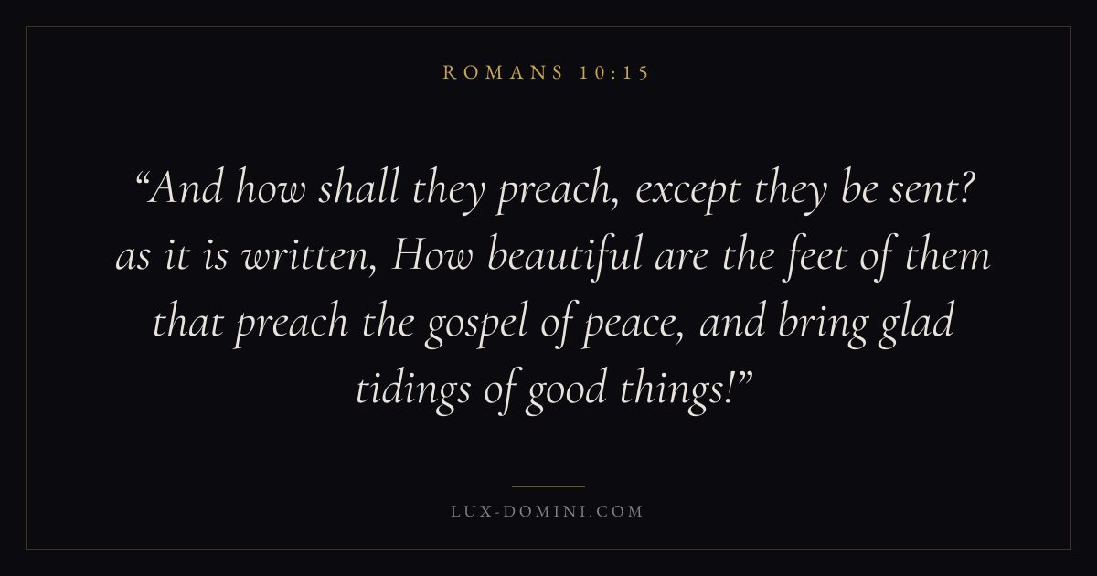 And how shall they preach, except they be sent? as it is written, How beautiful are the feet of them that preach the gospel of peace, and bring glad tidings of good things!