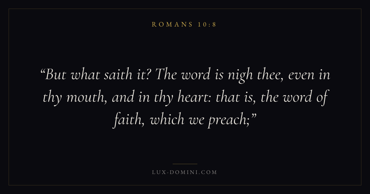 But what saith it? The word is nigh thee, even in thy mouth, and in thy heart: that is, the word of faith, which we preach;