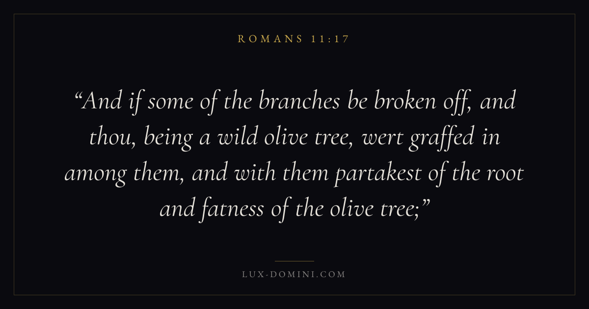 And if some of the branches be broken off, and thou, being a wild olive tree, wert graffed in among them, and with them partakest of the root and fatness of the olive tree;