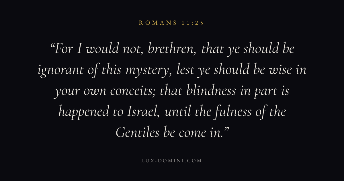 For I would not, brethren, that ye should be ignorant of this mystery, lest ye should be wise in your own conceits; that blindness in part is happened to Israel, until the fulness of the Gentiles be come in.