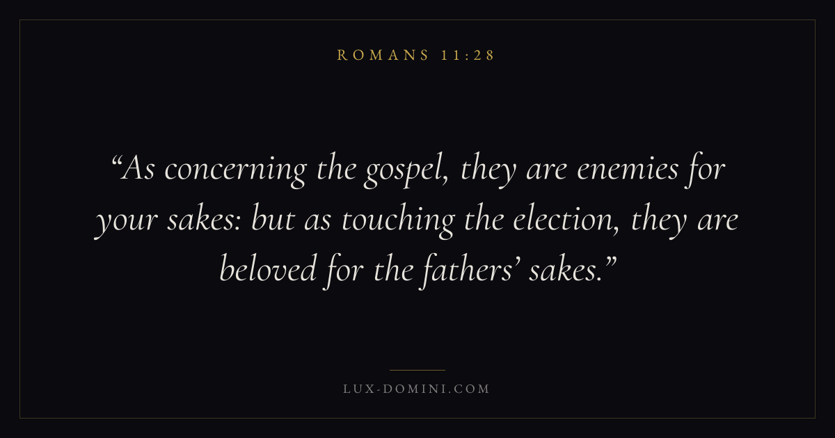 As concerning the gospel, they are enemies for your sakes: but as touching the election, they are beloved for the fathers’ sakes.
