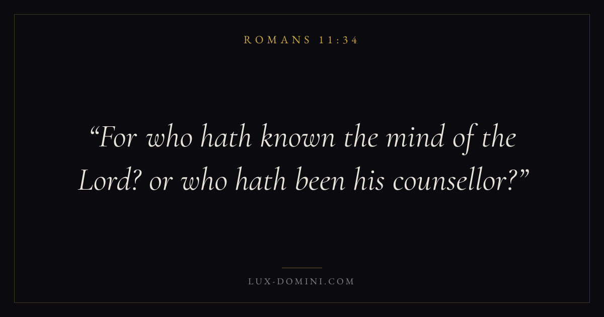 For who hath known the mind of the Lord? or who hath been his counsellor?