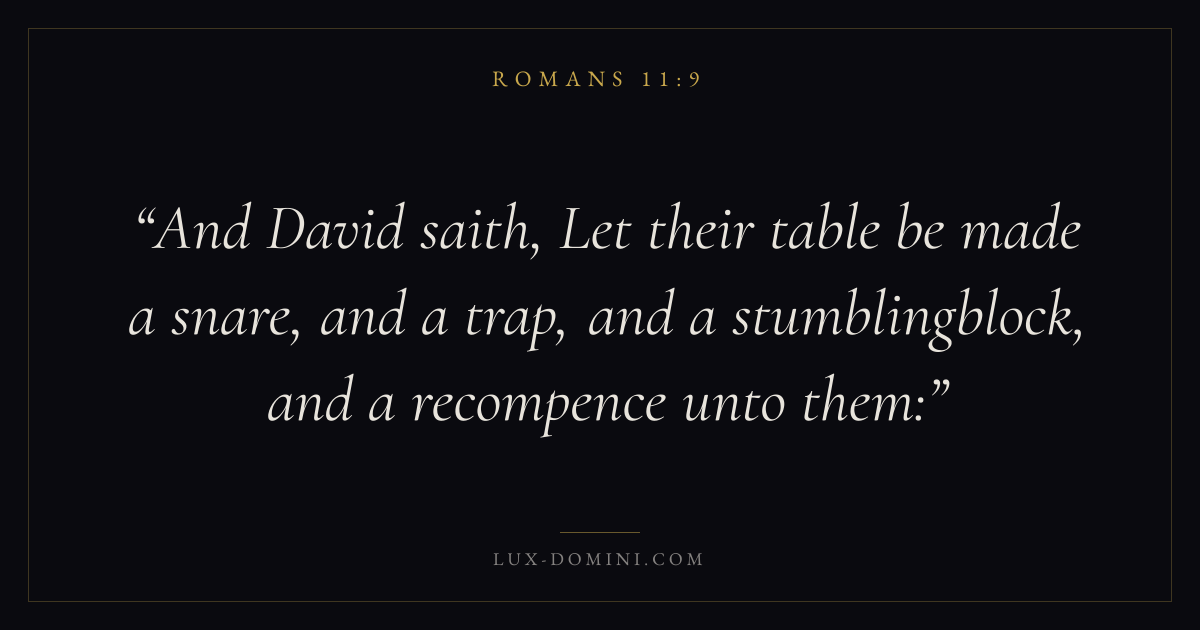 And David saith, Let their table be made a snare, and a trap, and a stumblingblock, and a recompence unto them: