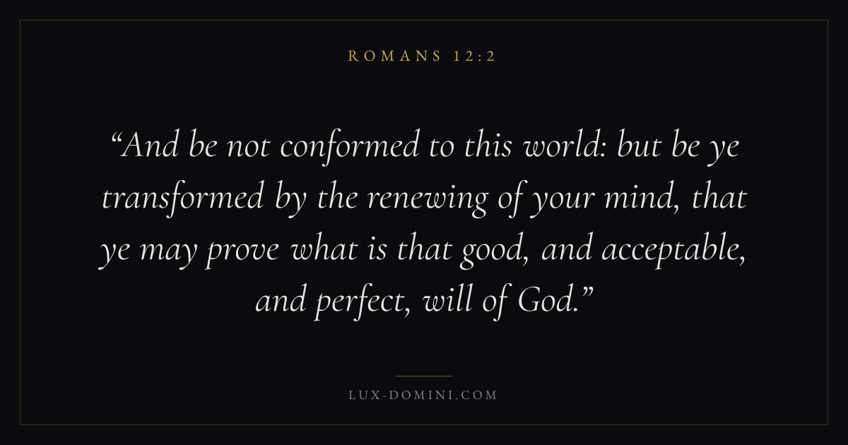 And be not conformed to this world: but be ye transformed by the renewing of your mind, that ye may prove what is that good, and acceptable, and perfect, will of God.
