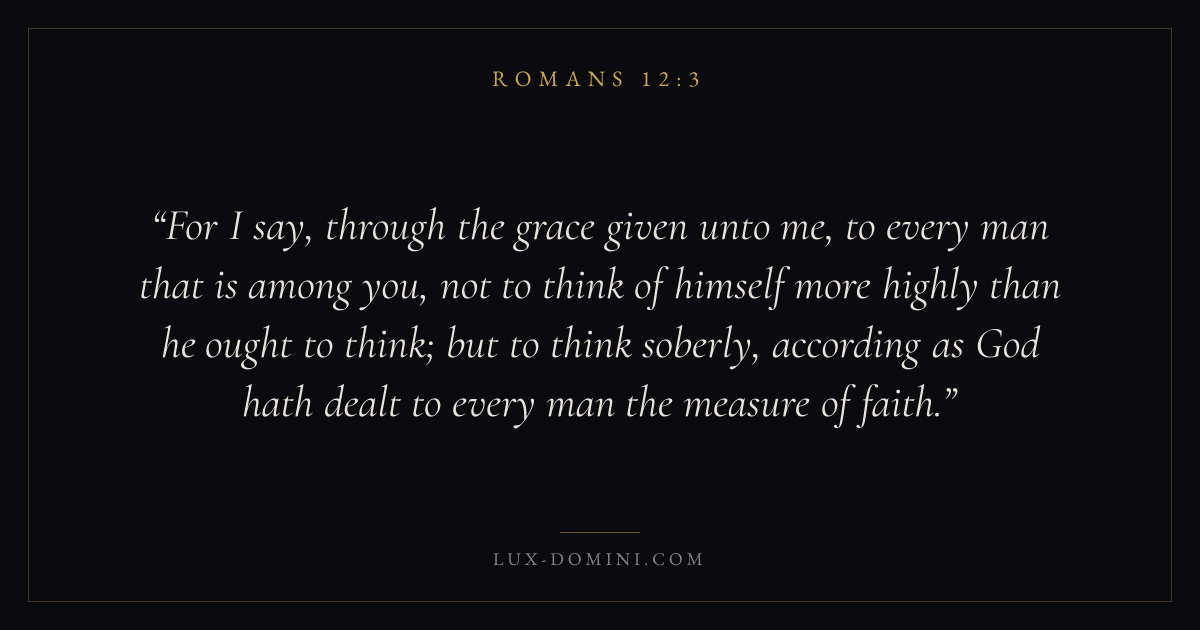 For I say, through the grace given unto me, to every man that is among you, not to think of himself more highly than he ought to think; but to think soberly, according as God hath dealt to every man the measure of faith.