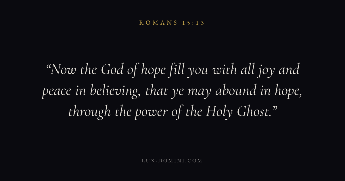 Now the God of hope fill you with all joy and peace in believing, that ye may abound in hope, through the power of the Holy Ghost.