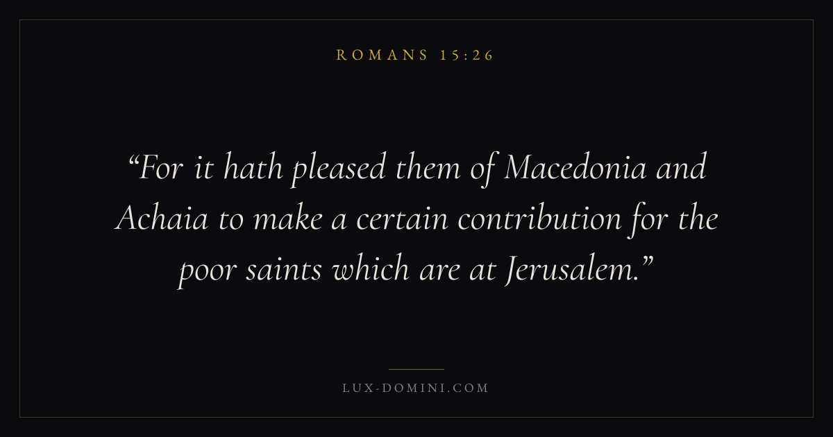 For it hath pleased them of Macedonia and Achaia to make a certain contribution for the poor saints which are at Jerusalem.