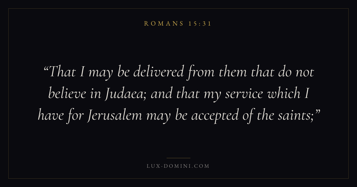 That I may be delivered from them that do not believe in Judaea; and that my service which I have for Jerusalem may be accepted of the saints;