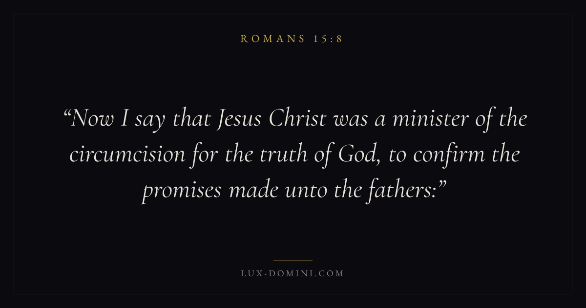 Now I say that Jesus Christ was a minister of the circumcision for the truth of God, to confirm the promises made unto the fathers: