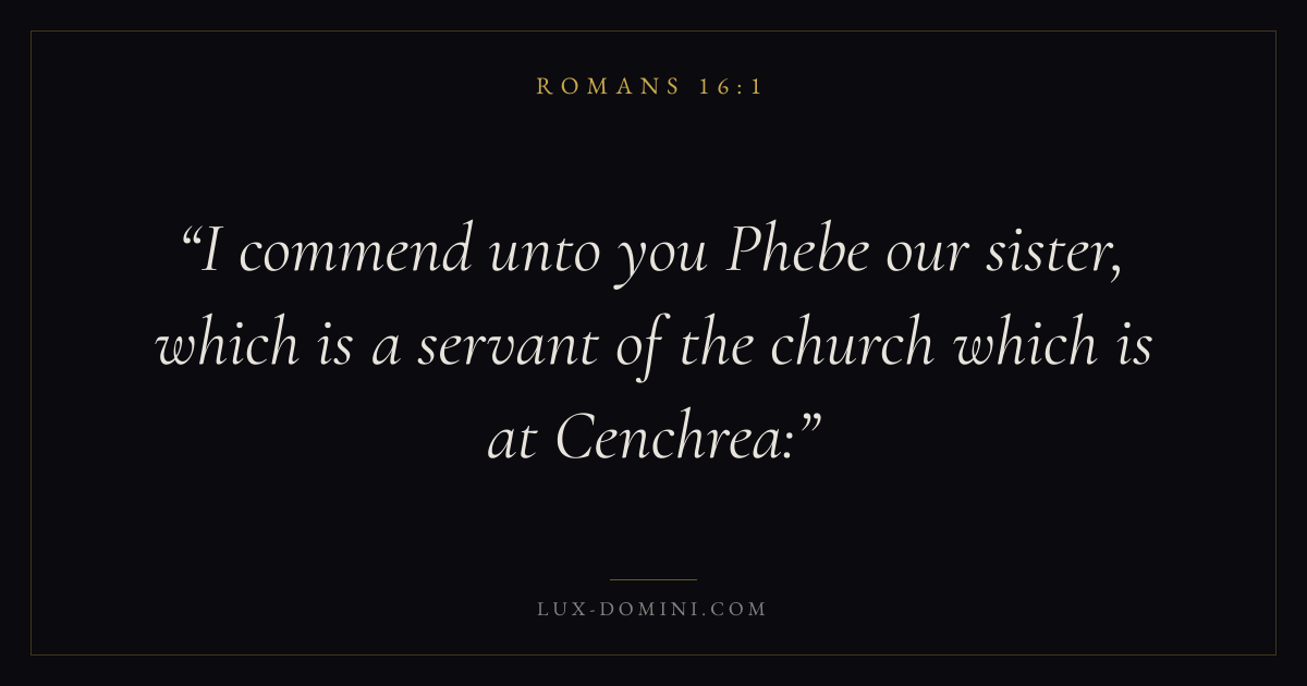 I commend unto you Phebe our sister, which is a servant of the church which is at Cenchrea: