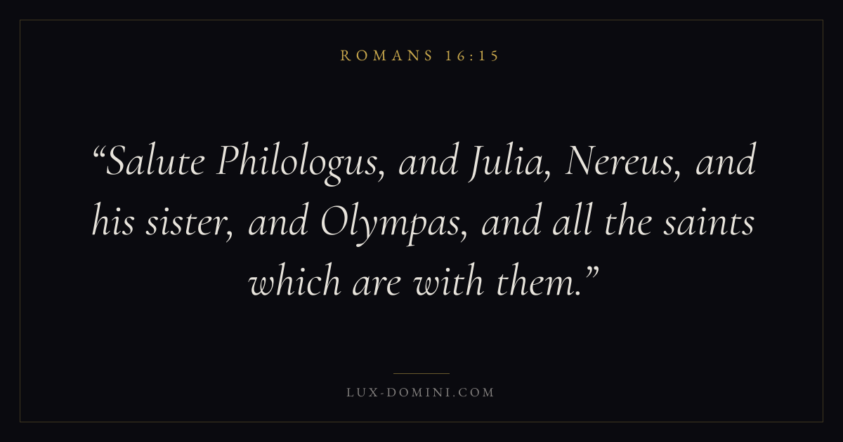 Salute Philologus, and Julia, Nereus, and his sister, and Olympas, and all the saints which are with them.