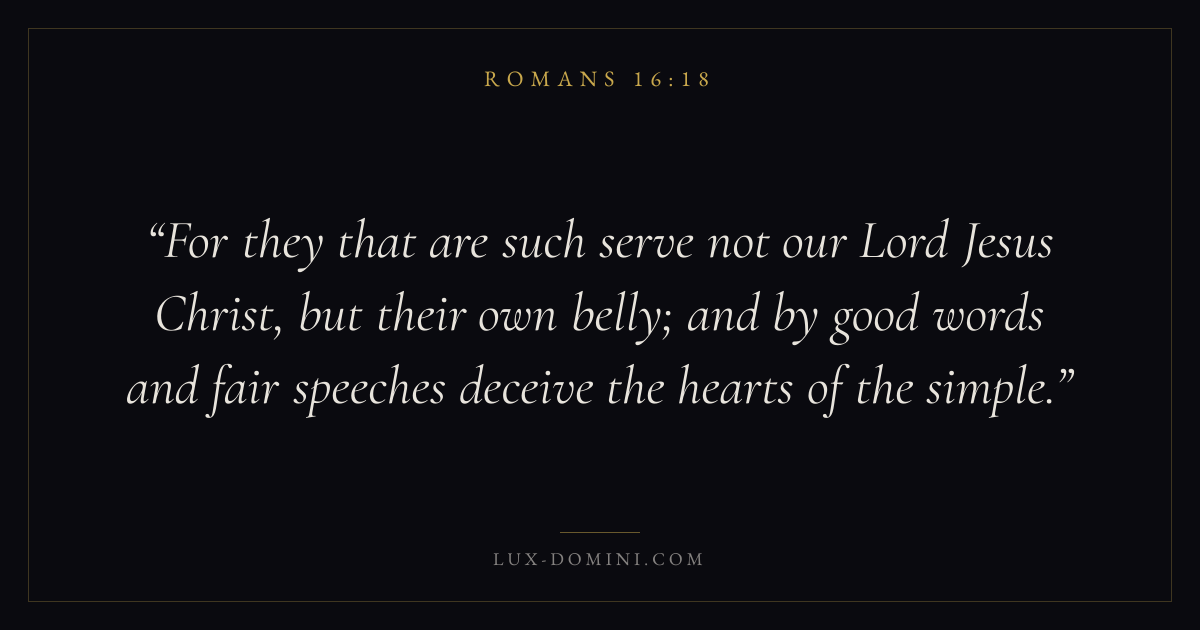 For they that are such serve not our Lord Jesus Christ, but their own belly; and by good words and fair speeches deceive the hearts of the simple.