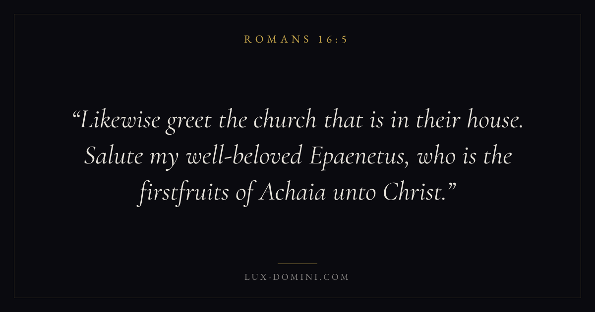 Likewise greet the church that is in their house. Salute my well-beloved Epaenetus, who is the firstfruits of Achaia unto Christ.