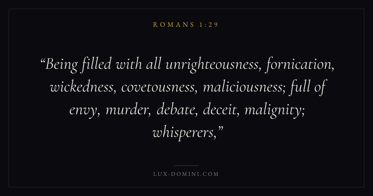 Being filled with all unrighteousness, fornication, wickedness, covetousness, maliciousness; full of envy, murder, debate, deceit, malignity; whisperers,