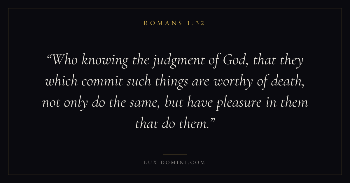 Who knowing the judgment of God, that they which commit such things are worthy of death, not only do the same, but have pleasure in them that do them.