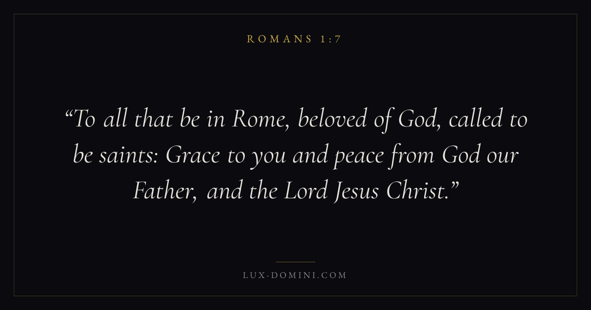 To all that be in Rome, beloved of God, called to be saints: Grace to you and peace from God our Father, and the Lord Jesus Christ.