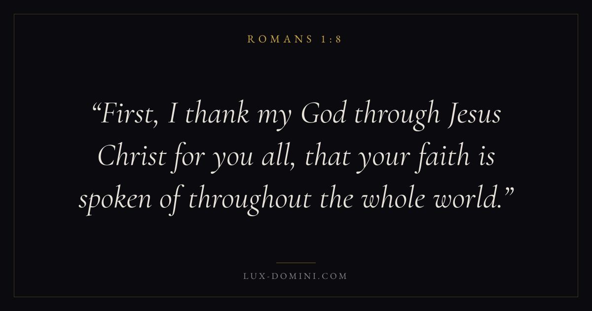 First, I thank my God through Jesus Christ for you all, that your faith is spoken of throughout the whole world.