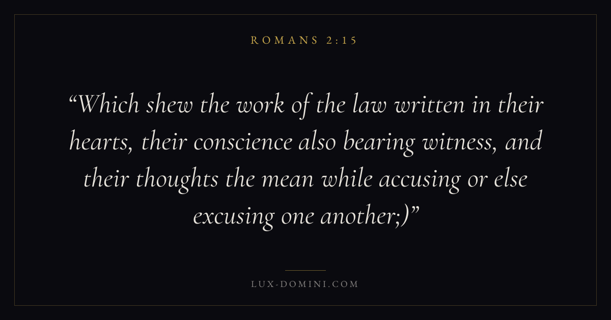 Which shew the work of the law written in their hearts, their conscience also bearing witness, and their thoughts the mean while accusing or else excusing one another;)